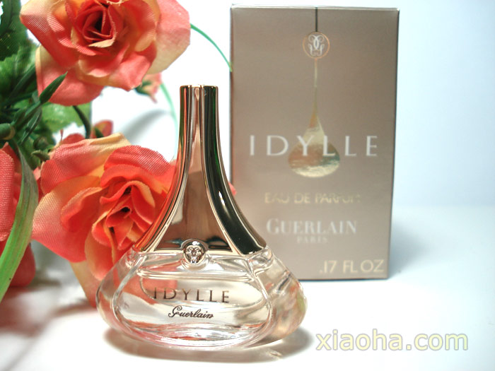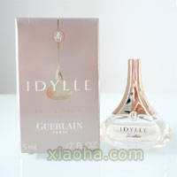 Idylle甜蜜情人淡香精的轻盈的缤纷花香特质,瓶身设计师欧拉伊托以金色露珠的造型瓶身,就像是情人花束上倾心可人的朝露,一点一滴珍藏爱情的气息;而水滴状的外型,圆弧柔滑的曲线,就像是年轻女子曼妙的曲线;为了凸显娇兰的皇室背景,除了以大量的金色包装于瓶身,在瓶身中央处则以透明、厚实玻璃,打造有如水晶玻璃般的轻盈与活力感。