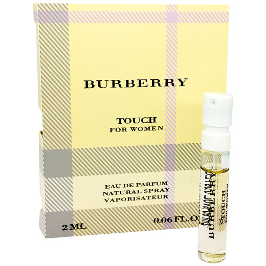 以格子图案为标志的英国时装品牌Burberry,2000年推出名为Touch的情缘香水。设计灵感来自线轴,这从它的香水瓶设计可见一斑,因为这是生产名牌衣服的基本用具,而外包装的盒子也印上了其标志的格子图案。